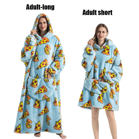 Cozy Oversized Holiday and Fun Print Hoodie Blanket